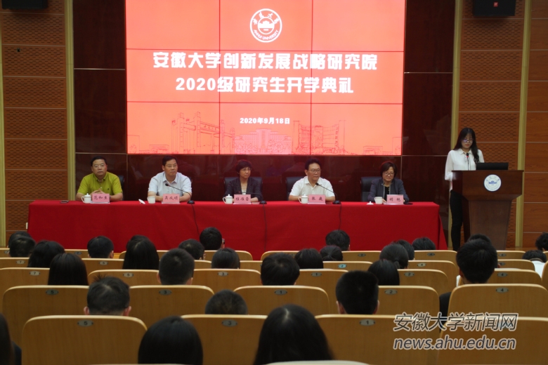 本网讯(通讯员唐惠敏)9月18日下午创新发展战略研究院在安徽大学磬苑校区文典阁报告厅举办2020级研究生开学典礼。校党委常委、副校长兼创新发展战略研究院院长程雁雷出席仪式。开学典礼由创新发展战略研究院直属党支部书记、副院长张巍主持。