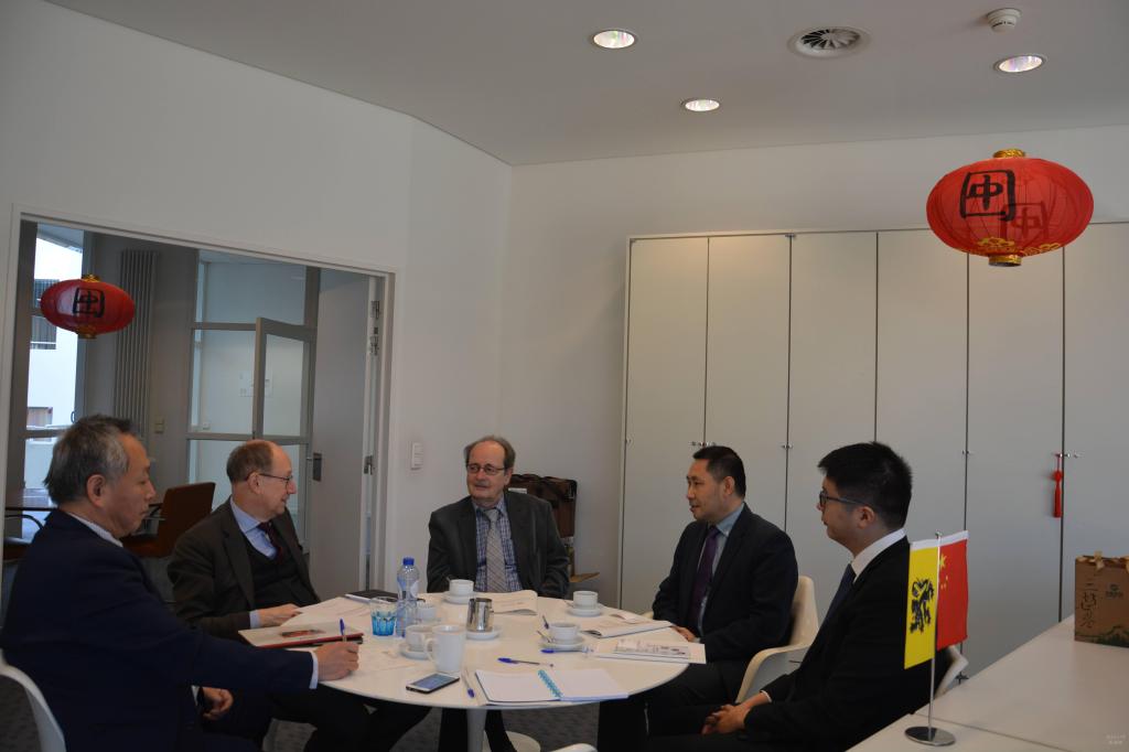 比利时当地时间1月16日上午,中国驻比利时使馆教育处郑保国参赞和随员孟雨到访我校鲁汶大学GROUP T – Academy孔子学院,与孔子学院理事会副主席Arthur D’Huys和理事会学术主任Frank Baert教授以及外方院长黎伟和中方院长邓新华进行了友好亲切的会谈。
