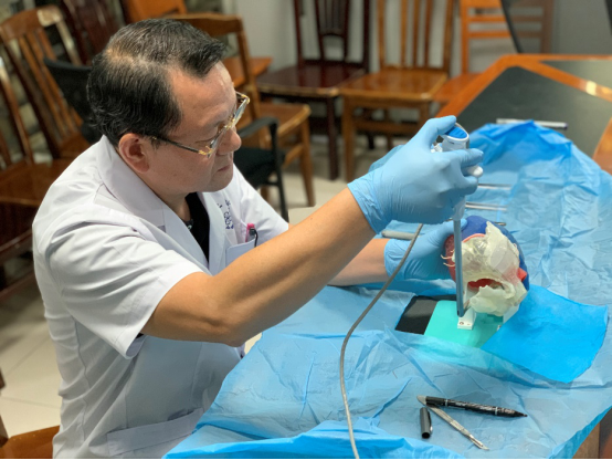 刘立明教授在复制的患者心脏3D打印模型上设计及模拟手术方案