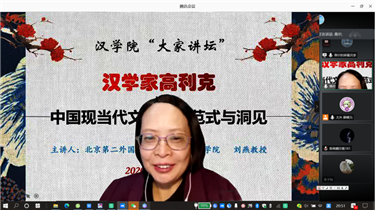 11月5日晚7点,北京第二外国语学院文化与传播学院教授、中华文化研究院海外中国学研究中心主任刘燕教授的讲座《汉学家高利克的中国现当代文学研究范式与洞见》在汉学院“大家讲坛”举行,陈子骄院长主持,汉学院师生和部分大外教师参加了讲座。
