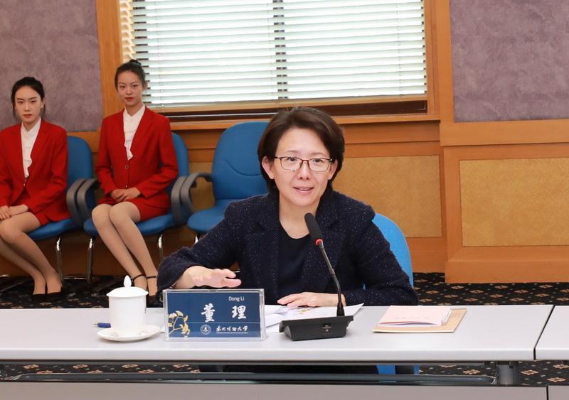董理对东北财经大学在财经专业研究水平和影响力给予了充分肯定。她表示对双方合作满怀希冀,希望东北财经大学能够充分发挥人才和智力优势,紧密围绕全省经济领域重大战略、重点问题、重要决策,联合开展重点课题研究,提出对策建议,实现智库资源共用和研究成果共享。
