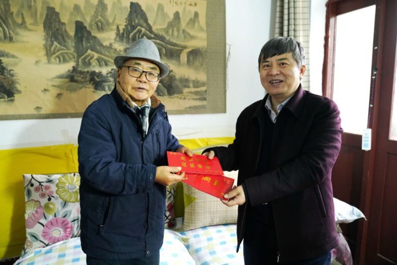 宋宝安为退休老同志送上慰问金,关切询问他们身体健康状况、生活情况及存在的困难,认真听取了他们对学校改革与发展的意见和建议,表达了学校对他们的关心与关注,并感谢他们多年来为学校作出的贡献,同时致以新春的美好祝福。