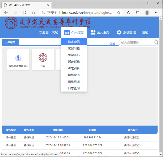 校内用户通过电脑浏览器登录,登录网址:http://im.lncc.edu.cn/im/