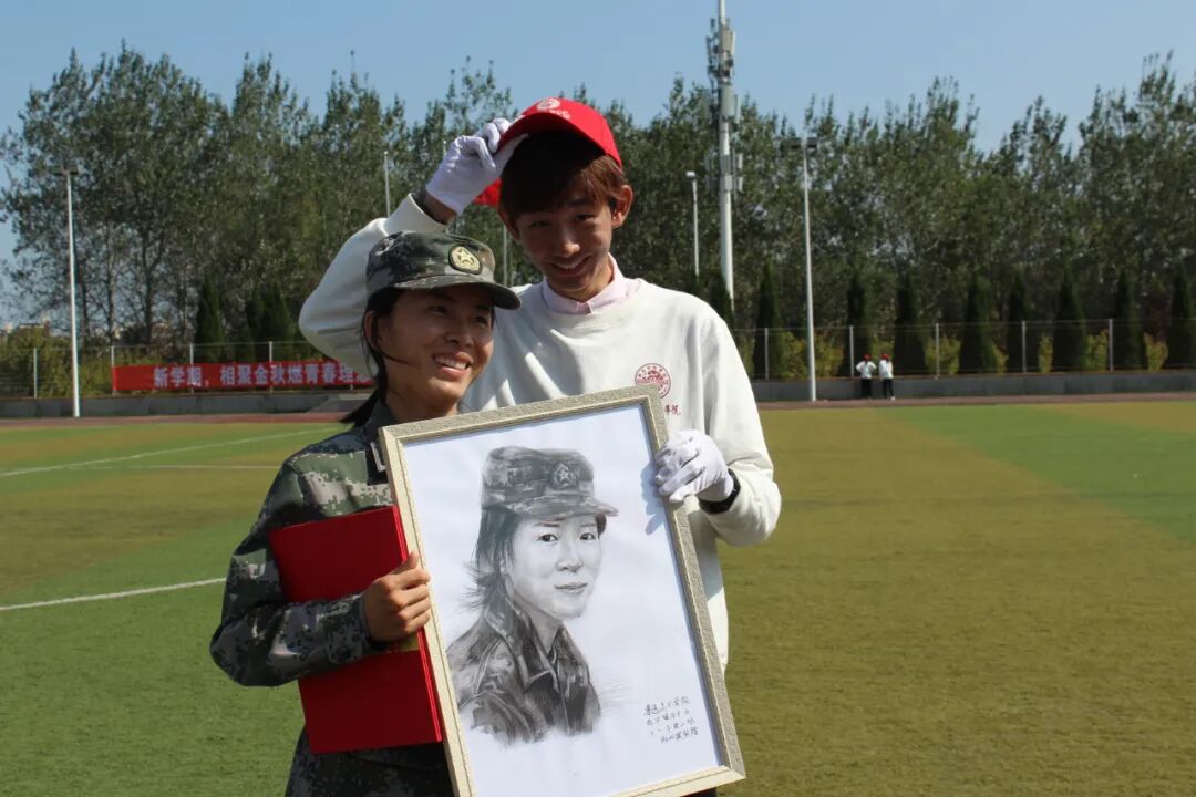 在十四天的军训中,教官和同学们建立了深厚的感情。分别在即,同学们用自己的专业能力把对教官的感谢化作了一幅幅生动的肖像画,亲手送给教官。
