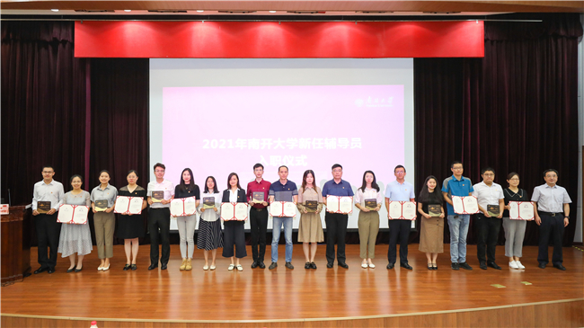 会议举行了2021年新任辅导员入职仪式。校党委副书记曲凯为9名新入职辅导员颁发纪念牌,为他们所在学院的党委副书记颁发“新入职辅导员实践导师”聘书。今年的9名新任辅导员中,4人通过公开招聘入职,5人通过南开大学“思政后备计划”培养。为鼓励大家不断学习,持续用科学理论武装头脑,学校为他们赠送了《习近平的七年知青岁月》《马克思主义为什么行》《中国共产党为什么能》《社会主义为什么好》等学习读物。