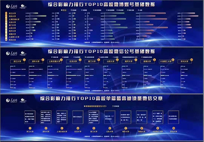 本年度榜单由人民网教育频道和人民网舆情数据中心联合推出,截取时间段为2018年9月至2019年9月,对165所部属重点高校和地方重点高校进行了多维度的综合评估,由多个榜单组成。南开大学在高校媒体影响力方面排在第九名;而在通过高校“双微”服务力、传播力和互动力等指标进行综合评估的高校新媒体综合影响力榜单上,南开大学首次上榜并位列第七名。