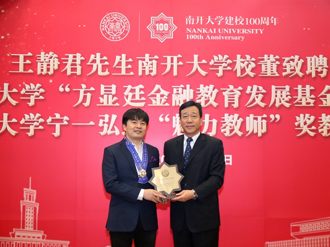 南开大学宁一弘道“魅力教师”奖教金也在当日颁发,本年度共有10名教师荣获“魅力教师”,并有10名教师获提名。王静君及相关学院负责人为获奖教师颁奖。