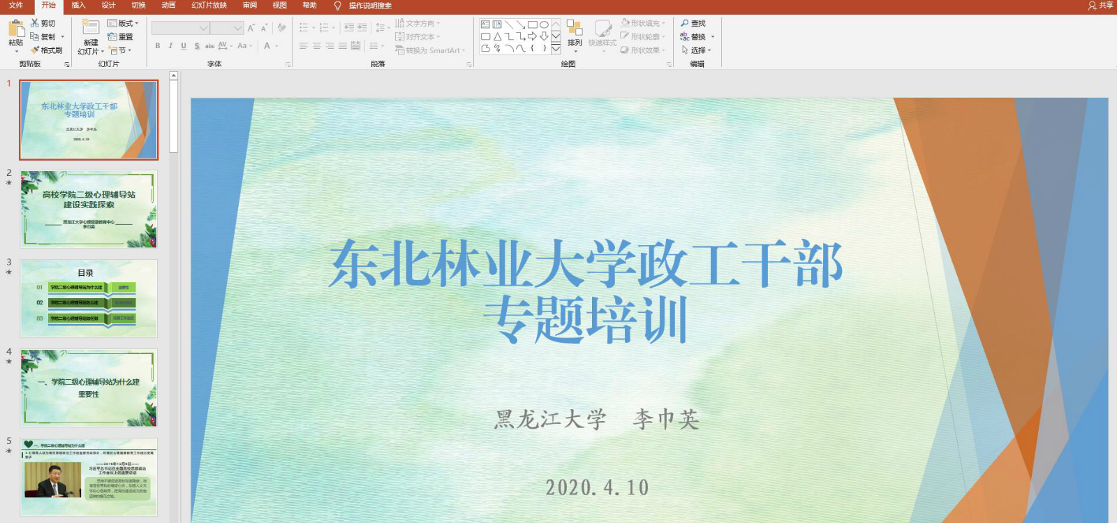 为进一步扎实推进各学院二级心理辅导站建设,切实提升学生思政工作干部心理育人能力,4月10日下午,党委学生工作部邀请黑龙江大学党委学工部副部长、心理健康中心主任李巾英副教授做了题为“高校学院二级心理辅导站建设实践探索”的专题培训。培训通过“腾讯会议app”线上直播的方式进行。学工部、校团委、国际交流学院、各学院党委副书记和专兼职辅导员共计110余人参加了此次培训。