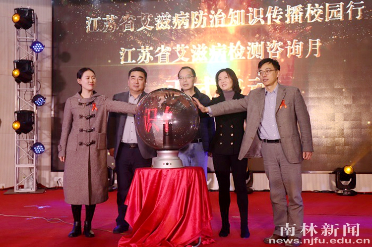 【南林新闻中心讯】11月30日下午,由省人民政府艾滋病防治工作委员会办公室、省教育厅、团省委和省红十字会共同主办的第31个“世界艾滋病日”主题宣传活动暨江苏省艾滋病防治知识传播校园行及检测咨询月启动会在我校教五楼报告厅举行。省人民政府艾滋病防治工作委员会办公室主任汪华,省红十字会副会长赵凯,我校副校长缪子梅,省教育厅体卫艺处副处长韩叶祥和团省委权益部韩路雨等领导和来自相关部门的专家,我校400余名师生参加了活动。