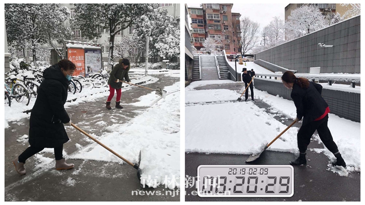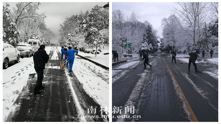 【南林新闻中心讯】新春伊始,一场瑞雪喜降南林,为校园增添了一份节日喜庆的同时,也给在校师生出行造成了不便。面对雪情,全校各部门以雪为令,积极开展除雪防冻工作,确保校园各主干道畅通、师生出行安全。