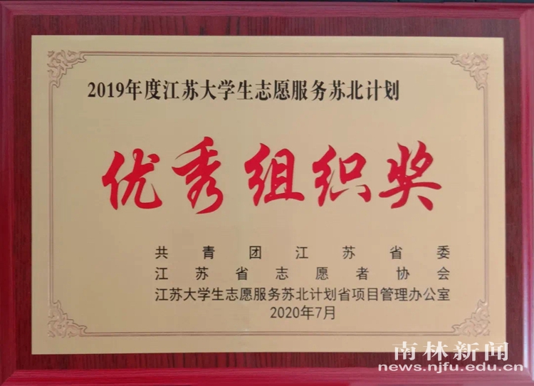【南林新闻中心讯】近日,2020年江苏大学生志愿服务西部计划、苏北计划出征仪式在南京南站举行。活动现场对2019年度江苏大学生志愿服务苏北计划先进个人和先进集体代表进行了表彰,我校荣获2019年度江苏大学生志愿服务苏北计划优秀组织奖。