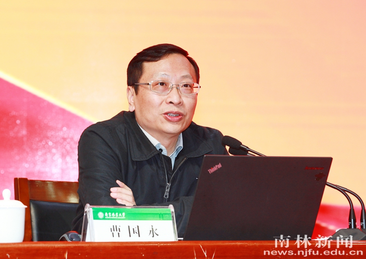 【南林新闻中心讯】11月16日下午,我校在教五楼报告厅召开学习贯彻全国教育大会精神主题报告会,邀请北京交通大学党委书记曹国永来校作了题为《人才培养是高等学校的根本任务》的报告。报告会由校党委书记蒋建清主持。