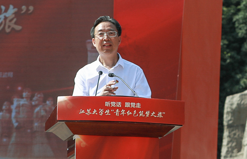 张爱军表示,希望同学们以这次活动为契机,通过参与思政微课、红歌传唱、现场教学等活动,深入了解党在江苏大地的浴血奋战史、艰苦创业史、改革创新史,自觉把个人理想同祖国前途、民族命运紧密联系在一起,做党的光荣传统和优良作风的忠实传人。希望同学们全身心投入其中,尽可能多地了解基层情况,了解各地“争当表率、争做示范、走在前列”的火热实践,了解“强富美高”新江苏建设的最新进展,更好地将专业知识与创新创业紧密结合起来,求真学问、练真本领,为今后在真刀真枪的实干中成就一番事业打下坚实基础。希望同学们从现在做起、从自己做起,自觉树立和践行社会主义核心价值观,自觉用中华优秀传统文化、革命文化、社会主义先进文化培根铸魂、启智润心,砥砺敢于斗争的坚强意志,弘扬艰苦奋斗的光荣传统,保持向上向善的精神风貌,努力成为堪当民族复兴重任的时代新人。