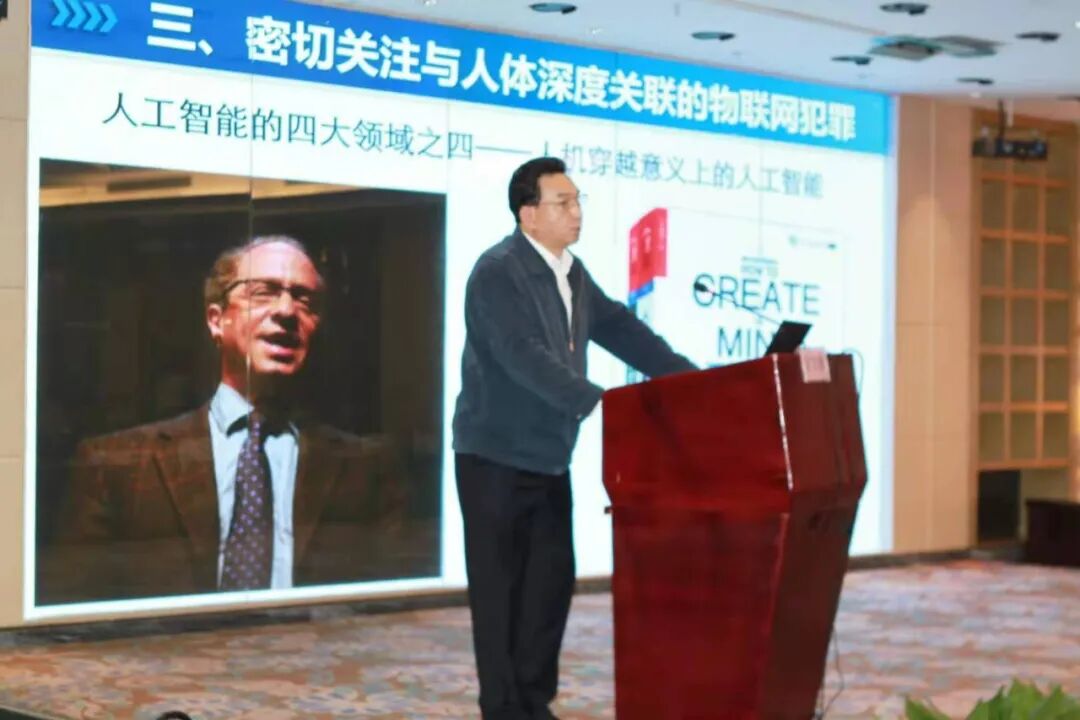 郝宏奎院长在致辞中,对黔东南州公安局承办此次研讨会付出的努力表示了感谢,对各位领导和专家的支持表示诚挚谢意,对各位参会代表表示了欢迎。郝宏奎院长随后作了题为“新型犯罪的侦查治理”主题报告,从我国新型犯罪面临的严峻形势、对物联网犯罪的预测预警预防、与人体深度关联的物联网犯罪、新型犯罪侦查治理的步骤与目标、落实治理责任的杀手锏和把握新型犯罪侦查治理战略机遇等六个方面进行了深入论述。郝宏奎院长指出,新型犯罪是一个相对的观念,就其本义而言,是指区别于已有犯罪类型的新的犯罪类型。当前高发频发的电信网络诈骗犯罪的本质特征是非接触性,新型犯罪的侦查治理必须坚持系统治理、综合治理、依法治理、源头治理,必须与国家治理体系和治理能力现代化的进程相同步。全面决胜非接触性犯罪需要一个漫长的过程,需要实施三步走战略,即初步构建产业发展与犯罪治理同步一体化机制阶段,全面完善产业发展与犯罪治理同步一体化机制阶段,和以完善的法律体系固化社会协同治理职责及成效阶段。郝宏奎院长提出了创新新型犯罪侦查治理的具体路径,必须将落实全社会的共同治理责任作为侦查治理非接触性犯罪的根本性、纲领性举措;必须祭出落实治理责任的杀手锏,打造三件利器,实行三项制度,构建三个共同体;必须把握新型犯罪侦查治理机遇,时刻拧紧潘多拉魔盒的盖子,全面秉持安全优先的发展理念,构建安全优先的法律制度,切实形成犯罪治理的社会共识和全球共识,真正建立起人类命运共同体,以维护人类共同的福祉。