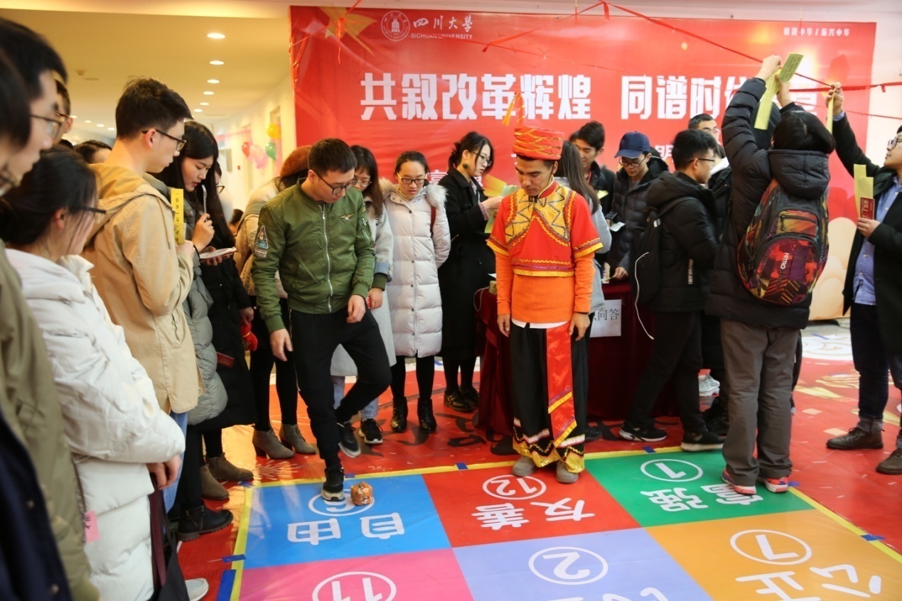 戊戌拂去,已送走昔日时光;己亥吹来,将带来耀眼希望。1日30日下午,学工部资助中心以“锦江春色绘大业·川大学子迎新春”为主题,在望江校区文华活动中心二楼举办寒假留校学生新春游园联欢活动,传递党和国家温暖,传承中华传统文化,300余名留校学生欢聚一堂,开启年味儿十足的川大年。