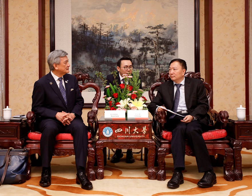李言荣首先代表学校对长谷部勇一一行表示欢迎,并简要介绍了学校的基本情况。他说,日本高校有着深厚的底蕴,在人才培养、科学研究等方面都有不少的先进经验值得我们学习借鉴。四川大学一直重视与日本横滨国立大学在人才培养、科学研究等方面的合作。近年来,川大持续开展了“国际课程周”,实施了“大川视界”大学生海外访学计划,希望两校学生能够通过这些项目加强交流互动,拓宽国际视野,提升全球胜任力。同时,四川和日本都是地质灾害多发区域,希望两校在防灾减灾领域能够进一步深化合作,尤其是共同探讨和推动防灾减灾大科学装置建设的可能性。