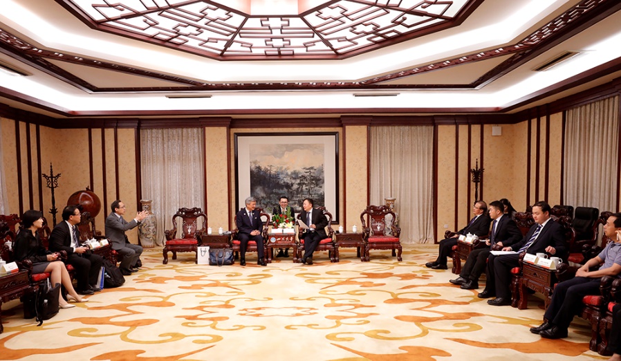 5月27日,日本横滨国立大学校长长谷部勇一率队访问我校。校长李言荣在望江校区明德楼贵宾厅会见来宾,副校长晏世经,及学校有关单位负责人参加会见。