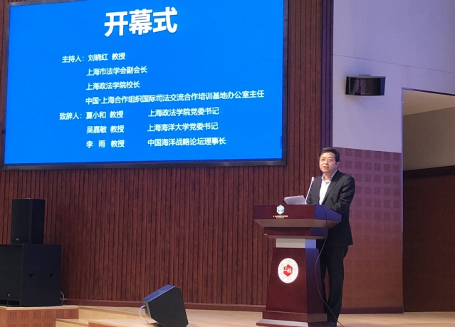 会议由中国海洋战略论坛、中国太平洋学会深远海资源环境管理研究分会、上海市法学会“一带一路”法律研究会、上海市法学会海洋法治研究会、上海政法学院联合主办,由中国-上海合作组织国际司法交流合作培训基地、上海政法学院上海司法研究所、上海政法学院经济法学院、我校海洋文化与法律学院、复旦大学环境与能源法研究中心承办。来自全国人大、国务院、中国法学会、海军及其研究机构、高校、海洋实务部门的领导、专家学者和研究生百余人参加了本次论坛。