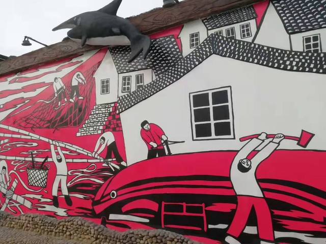 7月7日,调研团队从学校出发,经历了四小时海陆奔波后,下午安全抵达嵊泗本岛。稍作整顿后,团队立即前往调研第一站——东海渔村。东海渔村是国内“渔家乐”特色旅游项目的最早兴起地之一,也是嵊泗县唯一的省级休闲渔业示范基地。色彩缤纷的特色渔画深深吸引着实践团成员,据当地渔民介绍,这是政府统一规划后绘制的,遍布整个渔村。据走访得知,当地不少渔民已经完成了由传统捕捞业向休闲渔业的转变。