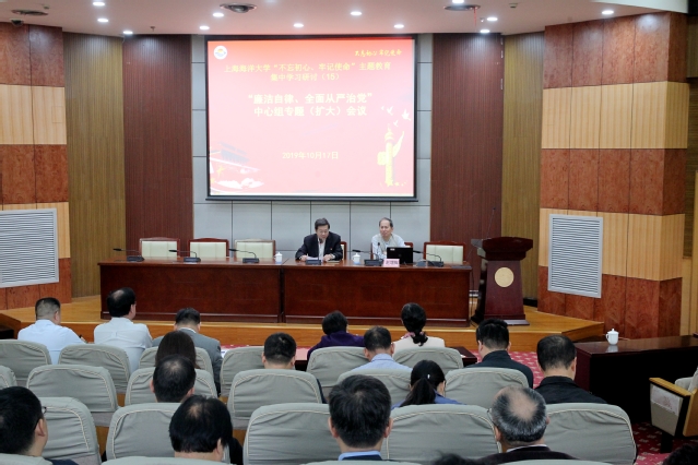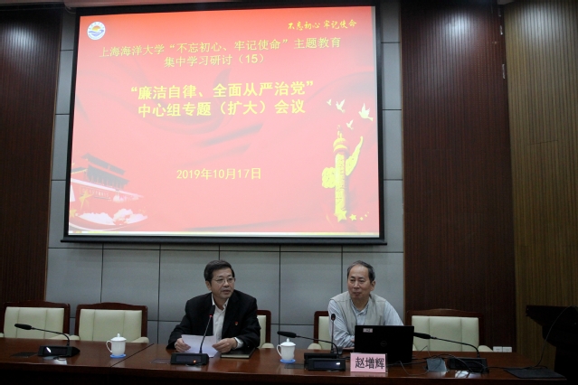 为扎实推进“不忘初心、牢记使命”主题教育,进一步加强党风廉政建设、筑牢廉洁防线,10月17日下午,校党委在行政楼137举行“廉洁自律、全面从严治党”专题理论学习中心组(扩大)会议,特邀原上海市委巡视组副组长、正局级巡视专员,原市纪委常委、秘书长赵增辉同志作“不忘初心使命,严守纪律底线”专题讲座,并组织相关单位做交流发言。校领导班子成员,理论学习中心组成员,全体中层干部,二级党组织纪检委员,专职宣传员共150多人参加了此次会议。校党委书记吴嘉敏主持会议。