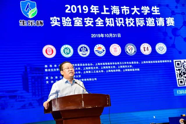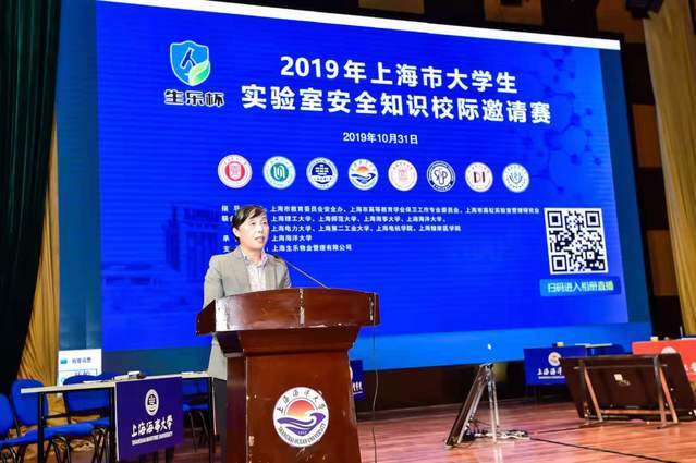 10月31日下午,2019年“生乐杯”上海市大学生实验室安全知识校际邀请赛在我校举行。本次邀请赛由上海市教育委员会安全办、上海市高等教育学会保卫工作专业委员会、上海市高校实验室管理研究会指导,上海理工大学、上海师范大学、上海海事大学、上海海洋大学、上海电力大学、上海第二工业大学、上海电机学院、上海健康医学院等8家高校联合主办,上海海洋大学承办。上海市教委后勤保卫处张旭处长出席并宣布比赛开始,上海市高校实验室管理研究会秘书长楚丹琪、上海高校后勤服务有限公司董事长沙德银、上海生乐物业管理有限公司董事长柏志成和副总经理黄军出席。