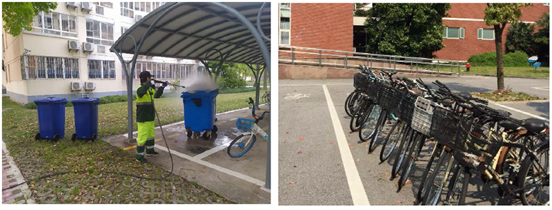 环境消杀、整理楼宇周边自行车