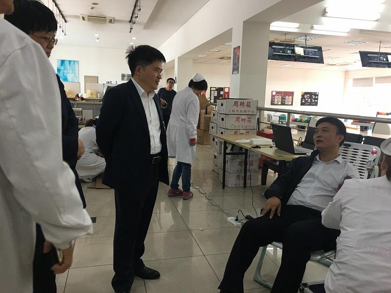 后勤保障中心党委书记蒋立峰全过程关心慰问献血工作,了解各环节设置与运行,问候上海市血液中心的工作人员,关心献血现场的志愿者同学,为参加献血的师生送上暖心的话语和亲切的关怀。