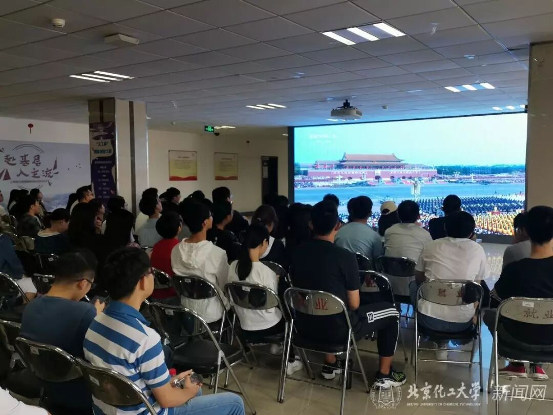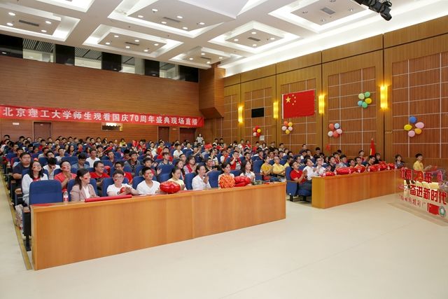 10月1日,北京化工大学组织师生在不同场所观看庆祝中华人民共和国成立70周年大会。