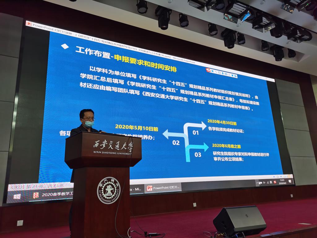 龙建纲对研究生“十四五”规划精品系列教材专项计划进行解读,并对精品系列教材的申报、评审、资助与管理等相关工作进行布置。他提到学校将按照“选优、选新、选特”的建设要求,做实各项工作,力争实现“每一学科规划系列打造精品,‘十四五’建成100本精品教材”的目标。
