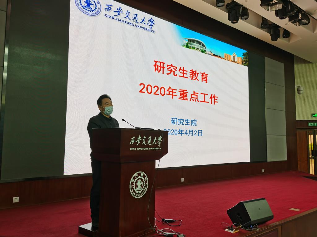 4月2日下午,西安交通大学2020年全校春季教学工作会议在科学馆101召开。大会围绕人才培养“十四五”规划、学生返校后相关教学安排、2020年重点工作等进行部署安排。郑庆华副校长,学校督导组组长、副组长,本科生院下属各单位、研究生院主管以上干部,各学院分管本科和研究生教学副院长、副书记、系主任、实验中心主任,各书院院务主任参加大会。招生办公室主任王秋旺主持大会。