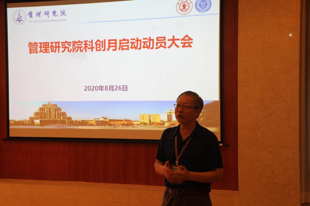 管理学院院长、管理研究院院长冯耕中介绍了学校“科创月”活动的整体安排,管理研究院组织架构、平台软硬件环境建设、文化建设以及科创月具体活动的部署情况。他强调,管理研究院由3名中国工程院院士、2名中国科学院院士和1位教育部工商管理教学指导委员会主任委员担任首席科学家,以一批中青年教师为骨干成员,跨学科组建团队,强调人才培养、科学研究、社会服务三者相统一,瞄准管理学科国际学术前沿开展前瞻性研究,注重管理理论创新和管理实践探索,为国家深化改革和推进经济社会发展出力献策。经过搬迁建设,目前研究院已初步形成了“6所+2中心+N平台”的组织架构,已具备开展科学研究的软硬件环境。冯耕中还介绍了本次“科创月”管理研究院将重点举办的四场活动:9月10日校企校地合作集中签约仪式、9月20日MBA 30周年活动、9月21日发起成立“丝绸之路产学研联盟”、9月22日中国-泰国名企·名校合作组团助力企业走出去系列活动。希望全院师生积极主动参与研究院内涵式建设和“科创月”活动,对标国际前沿领域,聚焦社会热点问题,加强对外交流与合作,扎实有力推进创新港科研平台建设。