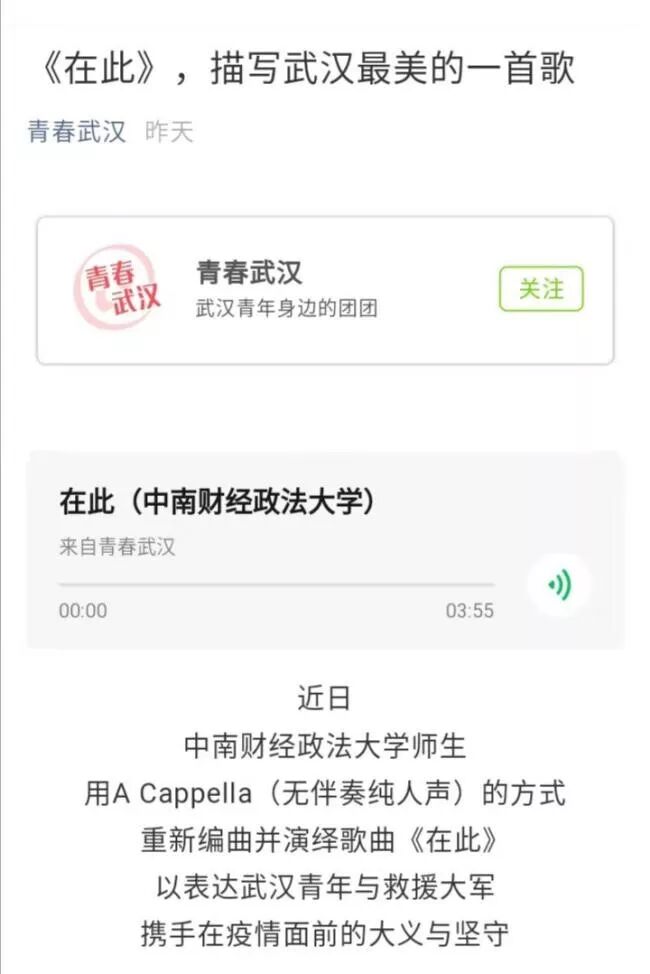 学校师生用阿卡贝拉方式录制《在此》为武汉加油