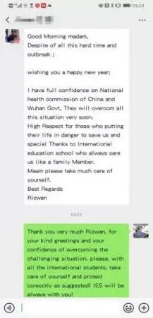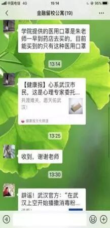 学生工作部及时将校友捐赠的口罩等相关物资发放到留校师生手中,会计学院等单位也通过看望慰问寒假留校学生的方式表达关心和祝福。校团委组织了线上青年学生打卡活动,引导青年学子合理安排假期生活,并用阿卡贝拉形式录制了描绘诗意大武汉的歌曲《在此》,为武汉加油。在校的阿富汗留学生也专门录制视频,为中国加油。